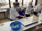 安田かまぼこ道場さんでは、がまの穂作り体験をした後、工場見学をしました。