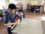 第2弾は、モルックと卓球のゲームをしました。真剣勝負をしたり、友達を応援したりしながら、楽しくゲームをしました。ゲームの後には、下級生から6年生にプレゼントを渡しました。そして、6年生からも下級生にプレゼントを渡して、すてきな笑顔でいっぱいになりました。